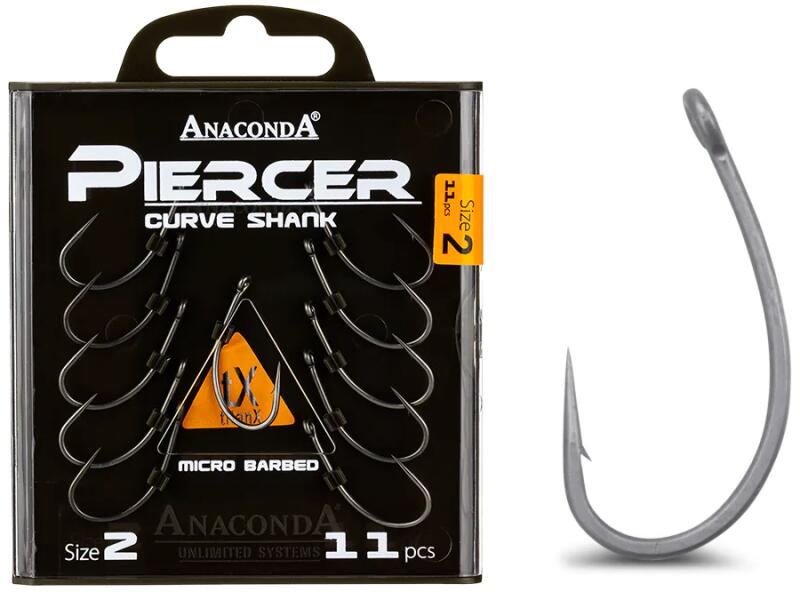 Anaconda Piercer Curve Shank pontyozó - bojlis horog, #2, 11db (2400202)