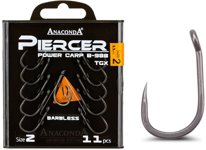 Anaconda Piercer Power Carp B-988 TGX szakáll nélküli bojlis horog, #2, 11db (2400602)