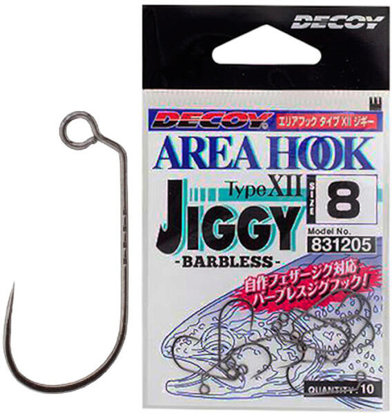 A Decoy Area Hook Type-XII AH-12 JIGGY egy speciális súly nélküli jig horog, melyet plasztikcsalis Ultra Light (UL) és Light pergető horgászatra fejlesztettek. Az AH-12 JIGGY modell barbless – azaz szakáll nélküli , aminek köszönhetően megkönnyíti a horog kiszabadítását a halak szájából, legyen az bármennyire kemény vagy csontos.