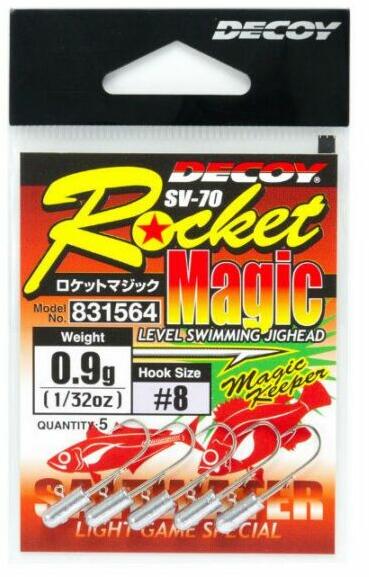 A Decoy SV-70 Rocket Magic egy kisméretű jig fej hengeres ólomsúllyal. Sokféle csali imitációt tesz lehetővé. A horogszár alatti csap biztosítja a lágy csali tökéletes tartását.