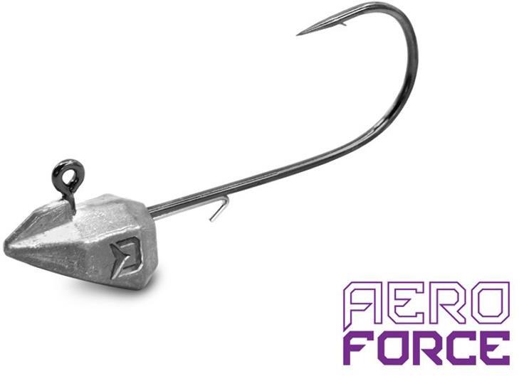 Delphin AeroFORCE – stabil jigfej a fenék közeli horgászathozA Delphin AeroFORCE egy kifejezetten fenék közeli pergetéshez tervezett speciális jigfej, amely optimalizálja a csali mozgását és csökkenti az elakadások esélyét. A lapos aljú kialakítás és az alacsony súlypont biztosítja, hogy a csali és a horog mindig felfelé álljon, így a kapások hatékonyabbak lesznek, miközben minimalizálja az akadókba ragadás kockázatát. Ez különösen előnyös fenék közeli ragadozók, például süllő vagy sügér horgászatánál. Az aerodinamikus fejforma segíti a zökkenőmentes áthaladást a víz alatti akadályokon, valamint a természetes és stabil csalivezetést. A hagyományos jig gallér helyett egy grub-tartóval van ellátva, amely biztosítja a csali stabil rögzítését anélkül, hogy sérülést okozna benne. A vékony, mégis rendkívül erős és éles horog garantálja a biztos akadást, így a legóvatosabb kapások is sikeres bevágásra válthatók. A Delphin AeroFORCE tökéletes választás azoknak a pergető horgászoknak, akik hatékony, megbízható jigfejet keresnek a fenék közeli csali vezetéshez és az optimális kapáskihasználáshoz!