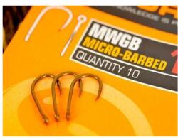 A nanotechnológiával élezett, tökéletes horoghegy gyorsan behatol a halak szájába és a mikroszakállas kialakítás, nagy biztonsággal tartja meg a zsákmányt. A GURU MWGB horgok klasszikus öblös kialakítása, remek választás a különböző keményebb és puhább horogcsalikhoz, de a nagy méretű fülkialakításnak köszönhetően, könnyed hajszálelőkés képzést is lehetővé tesz.
