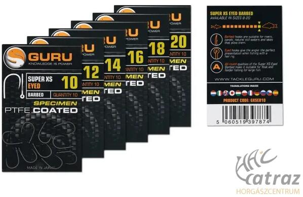 A Guru Super XS Eyed Barded horgok speciálisan extrém körülményekre lettek tervezve. Rendkívül széles öblük, hatalmas erejük, teflon bevonatuk és tűéles hegyük alkalmassá teszik őket a legnagyobb méretű halak megfogására is.