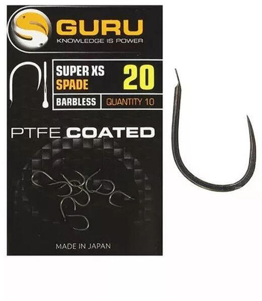 Guru Super XS Spade horog. Az extra nagy nyílás és a tartós hegy kiváló akadást és halmegtartást biztosít. Ezzel a horoggal könnyedén kikormányozhatod a a termetes compót vagy pontyot az akadóból. Nagyméretű csalikhoz is kiválóan használható.