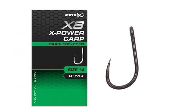 Matrix x8 - x-power carp hooks x8 x-power carp size 12 barbless - eyed (GHK194) - nextfish