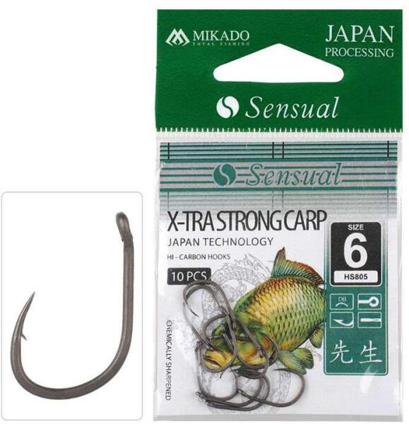 Mikado Xtra Strong Carp 8 Füles, Szakállas Pontyozó Horog 10db (HS805-8DB)