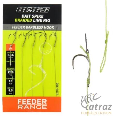 Előkötött, szakáll nélküli feeder horog, fonott zsinórral, horogtüskével. A NEVIS szakáll nélküli, halbarát horgokkal szerelt készlete két különböző hosszúságú előkével készített horogpárt tartalmaz! Mindazok számára, akik nem szeretnek a kötésekkel foglalkozni, ez a szerelék bevetésre kész!