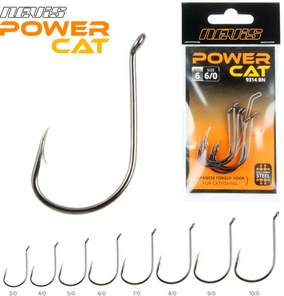 Nevis Harcsázó horog 9314 Fekete 7/0 6db/csomag Füles Szakállas Ragadozó halas horog (5653-007)