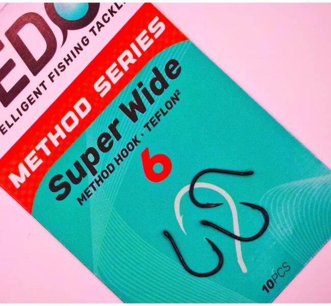 Super Wide Method– Extrém hegyes– Ultra Light– Kémiailag élesített, teflon szerkezettel megerősítve– Fejlett acéltechnológia és ipari kovácsolási folyamat a tartósság érdekébe– Nagyhalas horogtípus-Befelé hajlított és elcsavart horoghegy- Kifelé döntött horogszem 20 fokbbanA Super Wide horgunk mely tökéletesen alkalmas fonott és monofil rövid és hosszú előkés horgászatra. Egyedileg kifelé döntött horogszem remekül vezeti meg az előkezsinórt és rá is feszül fárasztáskor és akasztáskor. A horoghegy befelé hajlított és el is van csavarva mely növeli az akadás gyorsaságát , erősségét és hatékonyságát mert hamarabb fordul azoknál a horgoknál melyek nincsenek elcsavarva. Nagyobb méreteket pontyra és amurra javasoljuk pellettel, popuppal vagy kukoricával esetleg quick Stop-os módszerrel  csalizva. Kisebb méreteit versenykörülmények között, hideg vízben vagy apróbb testű  halak horgászatához,   5-6mm csalikhoz és kis méretű élő csalikhoz!